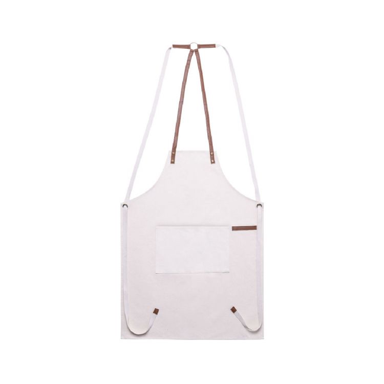 High-quality apron in resistant cotton canvas material, 340g/m2, with reinforced seams. Cut under the knee, with resistant PU leather straps and triple adjustment: neck, back and waist. With front pocket, PU leather accessory and metal rivets for reinforcement. (neutral color)