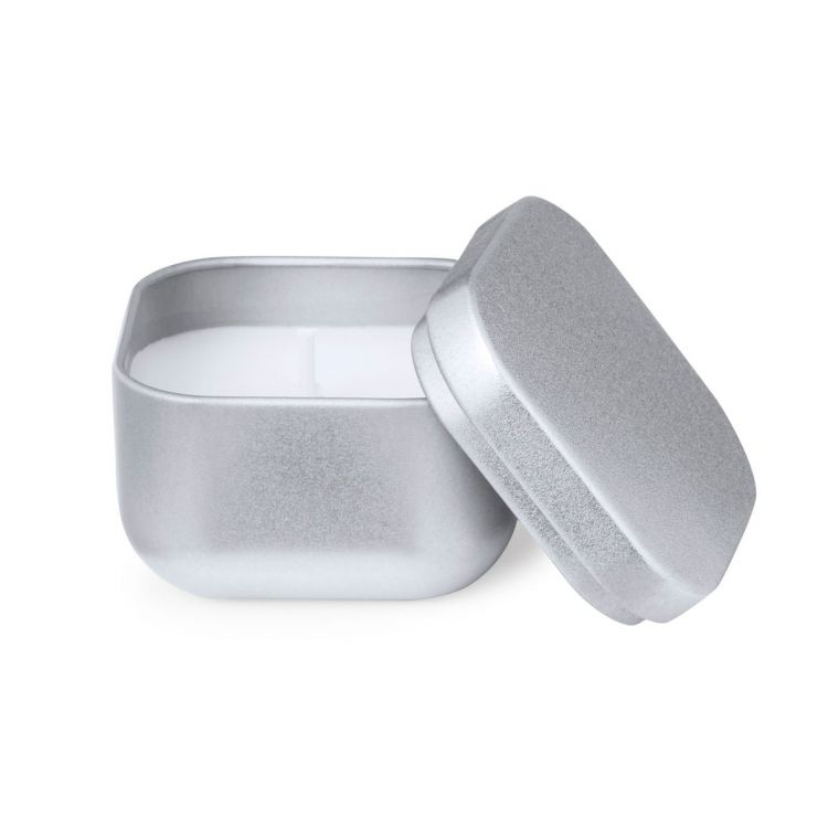 Scented candle in metal jar and in elegant colours, with vanilla fragrance. Presented in an individual kraft design box.