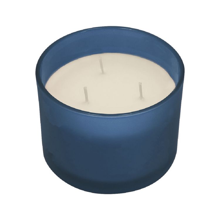 Aromatic candle in glass jar with three wicks. Available in glass of various colors and with different aromas depending on the color:White vanilla aroma.Black sandalwood aroma. Red cinnamon aroma. Navy blue jasmine scent.