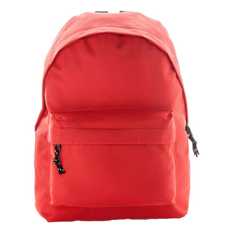 Backpack with zipped front pocket, padded back and shoulder straps. 600D polyester.