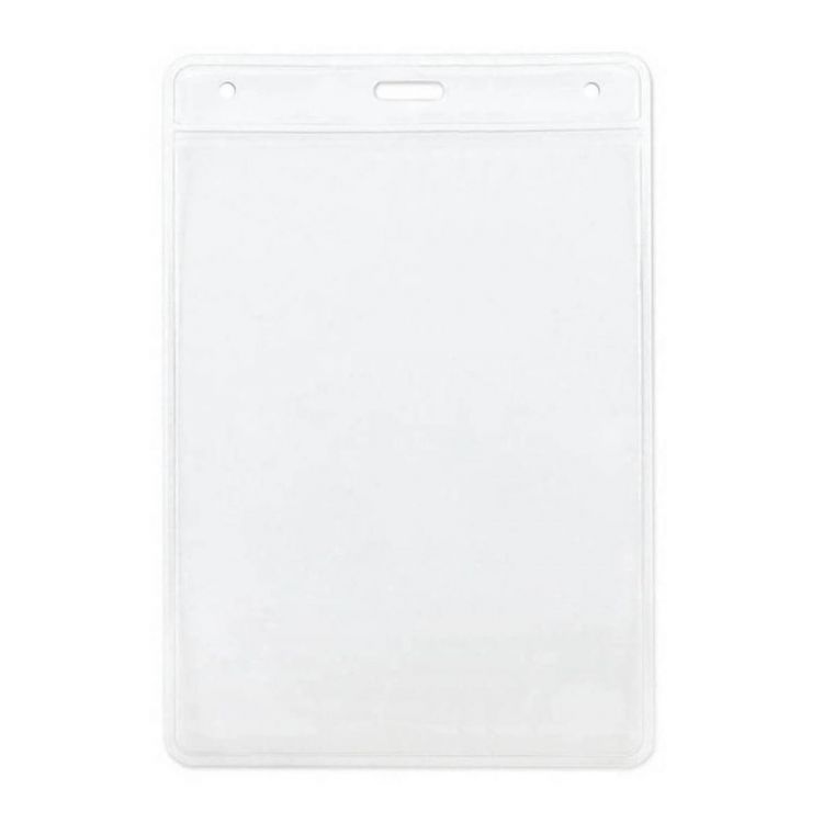 Vertical badge holder 156x240 mm, in transparent PVC, with a central slot in the upper part
