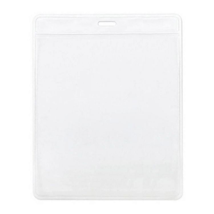 Vertical badge holder 100 x 125 mm, in transparent PVC, with a central slot in the upper part