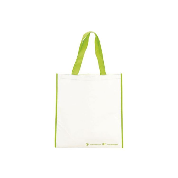 Bag in resistant recycled PET material in a wide range of bright tones. With long handles of 60cm in green and reinforced in nylon. Stitched finishing and resistance up to 12kg weight.