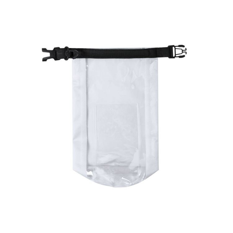 Waterproof bag with 2l capacity, including tactile, transparent window for smartphone. Made in resistant ripstop, with security lock, handle with buckle adjustment, and carabiner. Available in a variety of bright colours.