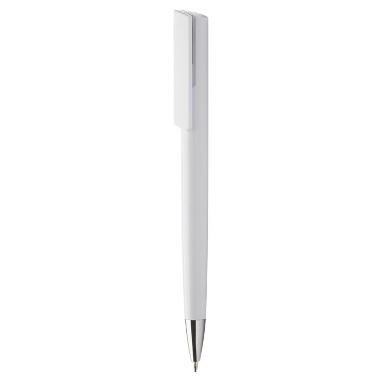 Plastic ballpoint pen with chrome tip and top. With blue refill.