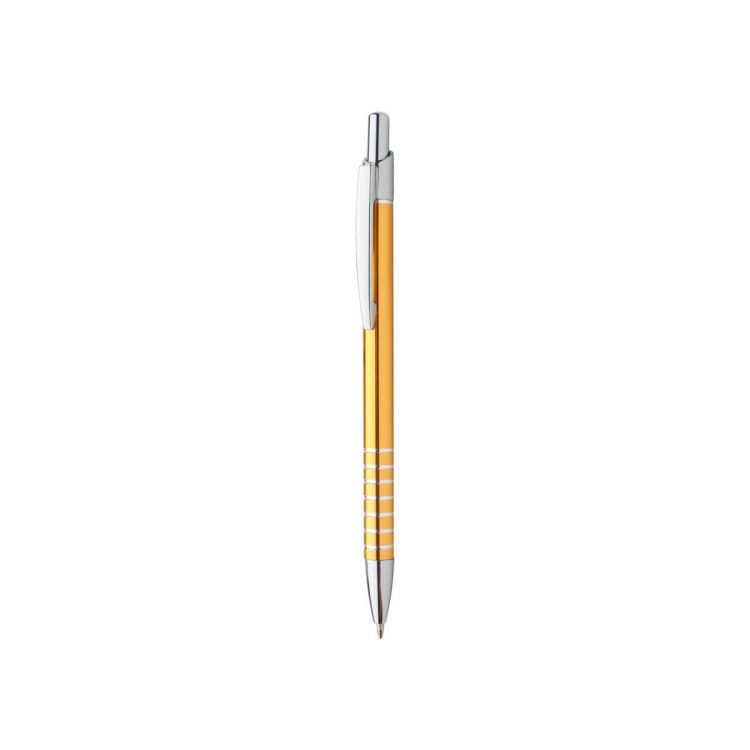 Aluminium ballpoint pen with rings, with chrome clip and tip. With blue refill.