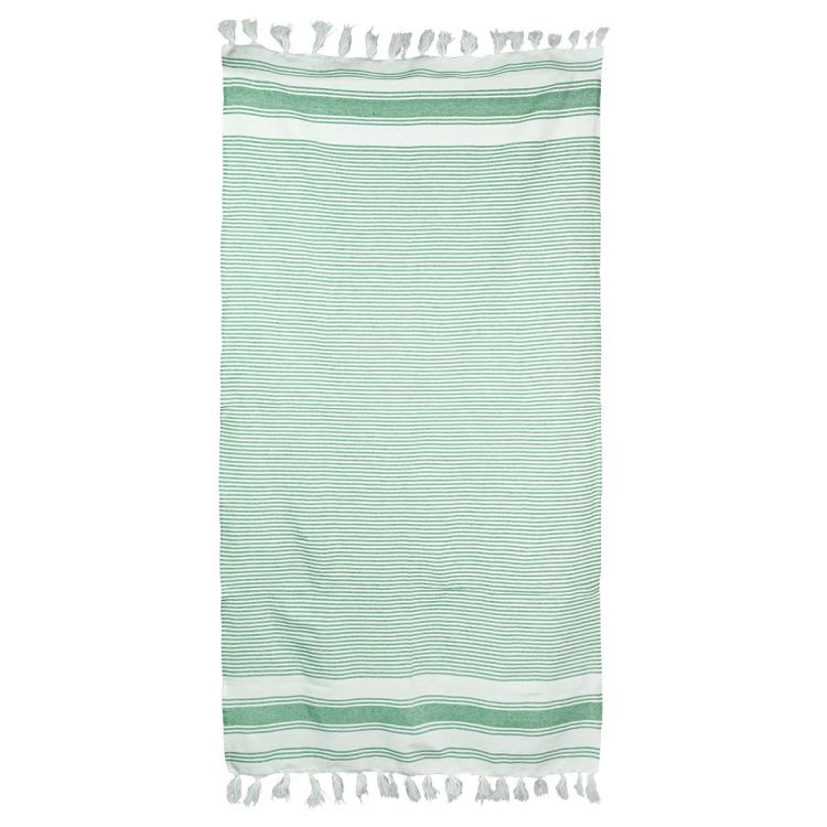 Two-tone striped pareo beach towel in 70% cotton and 30% polyester. 210 g/m².