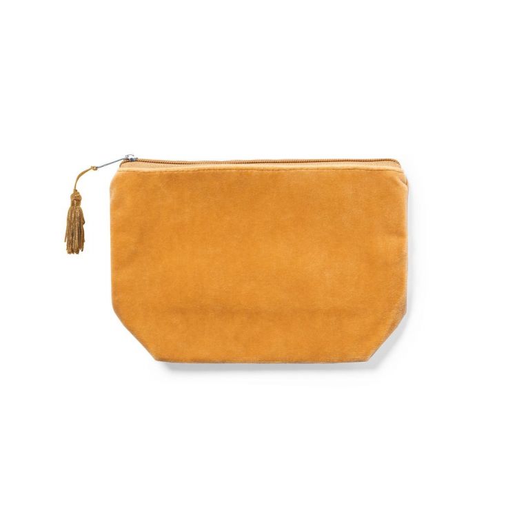 Beauty bag with soft velvet touch. With zip closure and tassel puller. Made in rayon velvet with stitching finish and available in brown and black colours. (brown color)