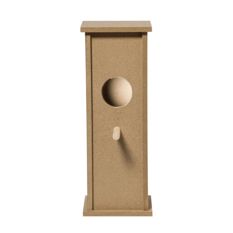 Hanging bird house made of solid wood. Very easy to assemble, with a large entrance door for easy access. Presented in an individual kraft box. (neutral color)