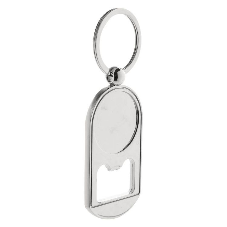 Metal bottle opener with keyring and epoxy dome. In black gift box. Price includes epoxy dome printing. MOQ: 100 pcs
