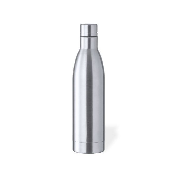 1 l capacity bottle, in stainless steel with shiny finish. With matching screw cap in stainless steel, BPA free. Presented in an individual box with kraft design.Instruction manual available in Spanish and English. (silver color)