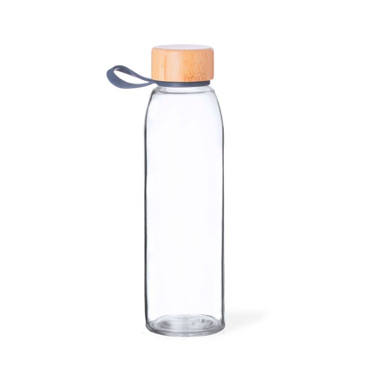 500 ml glass bottle. Bamboo screw cap with useful silicone handle. Presented in a kraft design box. (neutral color)