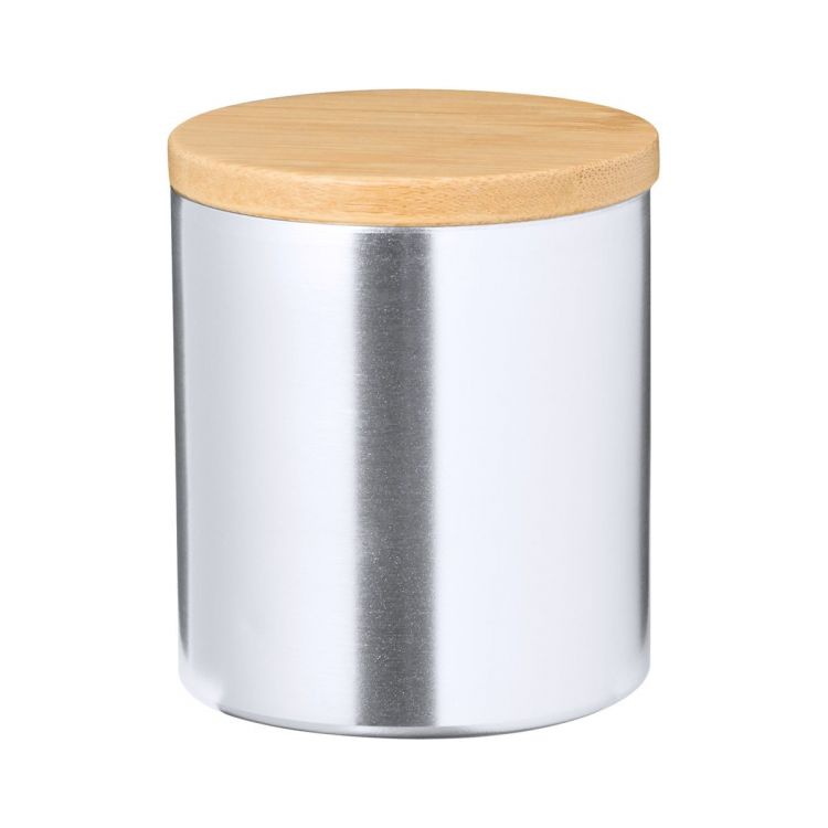 Vanilla scented candle in aluminium holder with bamboo lid.