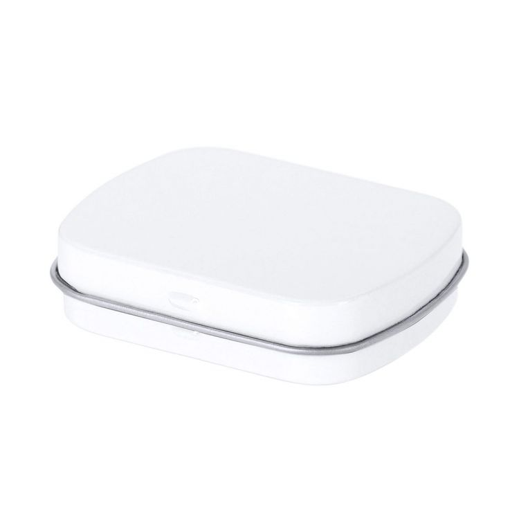 Dispenser of sugar-free mints with 23 gr. Presented in a metal box with hinged lid.
