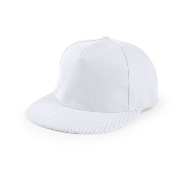 5 panel cap with padded flat visor. Combination of cotton and thick polyester materials with smooth finish, adjustable velcro closure and vivid colors.