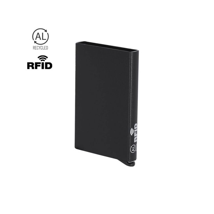 Cardholder made from recycled aluminum. Capacity for up to 10 cards, with an ingenious sliding mechanism for easy access to the cards. RFID (Radio Frequency Identification) security technology that keeps your identity transmission devices secure. RFID and Recycled Aluminum labels.Recycled aluminum is a material with almost infinite recycling possibilities, without losing its original properties and consuming less energy in the process.GRS certification (Global Recycled Standard), which guarantees the recycled origin of the material used to manufacture the product.