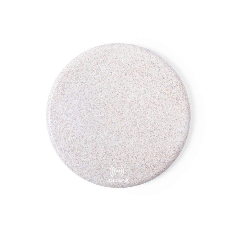 Wireless charger with a circular design made of wheat straw, in order to encourage the use of natural raw materials and reduce contaminant emissions. With 10W fast charge function and led indicator. Micro USB charging cable included and compatible with devices equipped with wireless charging technology. Safety protection to avoid overheating, overcharging and short-circuiting. Presented in an attractive box of nature design. (neutral color)