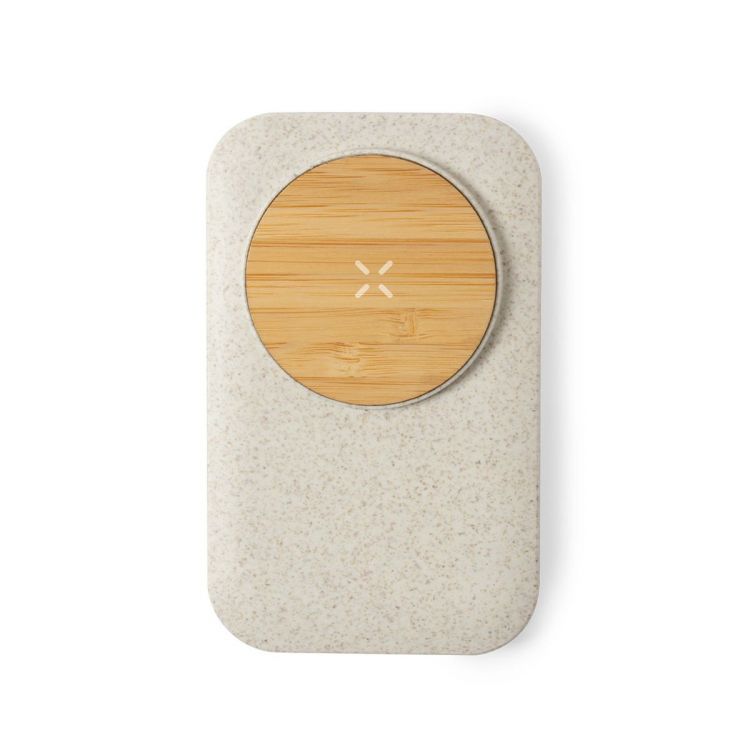 Wireless charger in nature line. Bamboo shell in combination with wheat straw, to encourage the use of natural raw materials and reducing contaminant emissions. Charging indicator and compatible with devices equipped with wireless charging technology. Wide printing area and presented in an attractive, individual, eco-design box. Cable included (neutral color)
