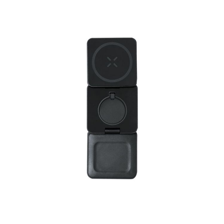 Magnetic 4-in-1 wireless charger with 15W, made from recycled ABS (RABS). Designed for the simultaneous charging of a smartphone, headphones, smartwatch, and mount. An all-in-one gadget: foldable, portable, compact size, very versatile, and with functional design. Matte finish with a rubbery feel. USB Type C connection -cable included-.The RABS is a highly recyclable plastic that offers great resistance and a multitude of applications that make it an eco-friendly solution.Manufactured according to RoHS standards and complies with the following safety requirements:Overheating protection system.Overload protection system.Locking system to prevent short circuits. (black color)