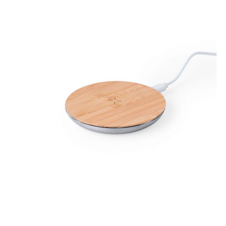 Wireless Charger 15W with circular design, body made of Recycled Aluminium and bamboo charging base. Compatible with devices equipped with Qi wireless charging technology, with Type C charging cable included and LED charging status indicator. Non-slip base and presented in an individual box of kraft design, with instruction manual in English and Spanish.Materials such as bamboo encourage the use of natural raw materials, reducing pollutant emissions. It comes from a highly resistant and versatile plant with rapid growth and regeneration, making of it an excellent alternative to traditional wood.Recycled Aluminium is a material with almost infinite recycling possibilities, keeping its original properties and consuming less energy during this process.GRS Certification (Global Recycled Standard), which guarantees the recycled origin of the material used to manufacture the product.Manufactured according to RoHS standards and in compliance with the following safety requirements: Overheating protection system. Over-charge protection system. Blocking system to prevent short circuits. (silver color)
