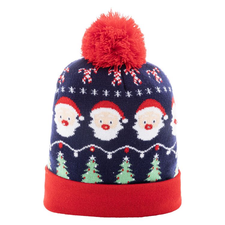 Knitted Christmas beanie in acrylic with 6 LED lights (3 light modes), cuff and bobble. With button cell battery