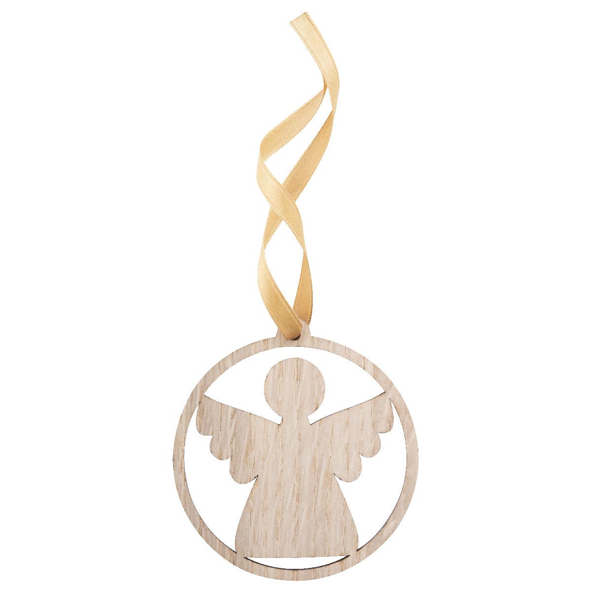 Wooden Christmas tree ornament in oak veneer with gold ribbon. Delivered with detached ribbon