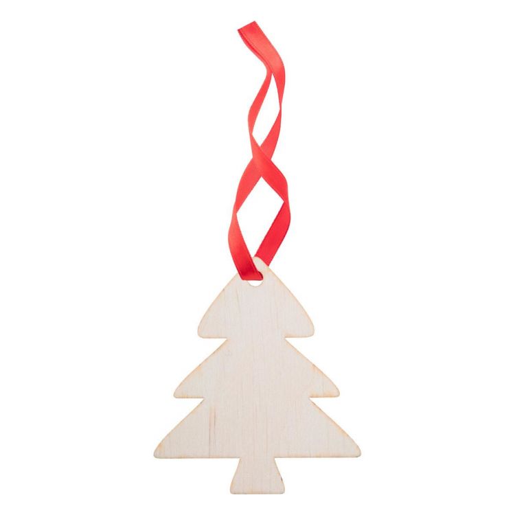 Wooden Christmas tree ornament in birch plywood, with red ribbon. Delivered with detached ribbon