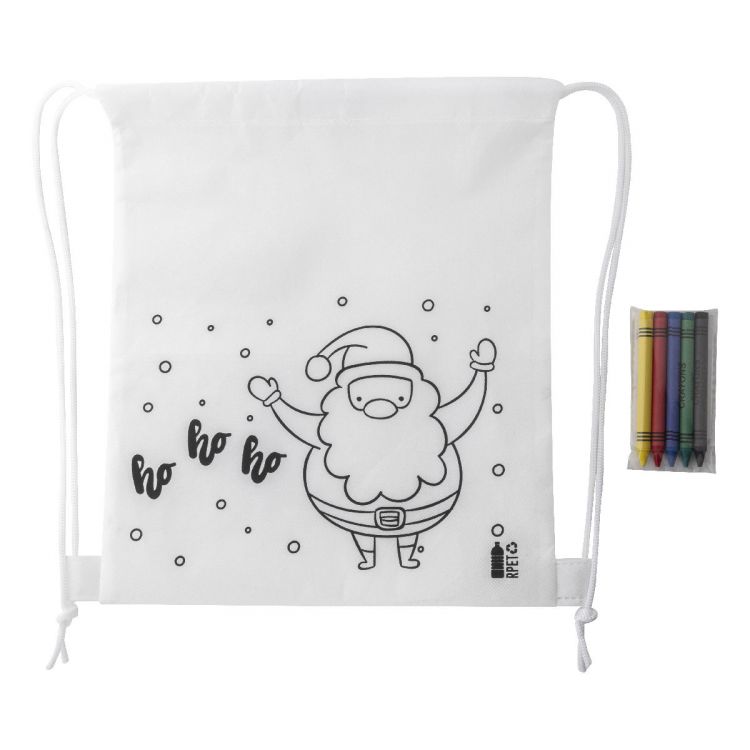 Colouring Christmas drawstring bag in RPET non-woven with 5 crayons