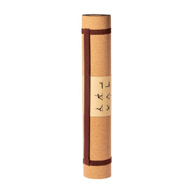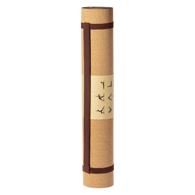 Natural cork yoga mat with kraft paper sleeve and carry strap
