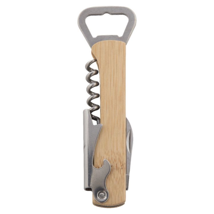 Stainless steel bottle opener and corkscrew with bamboo handle
