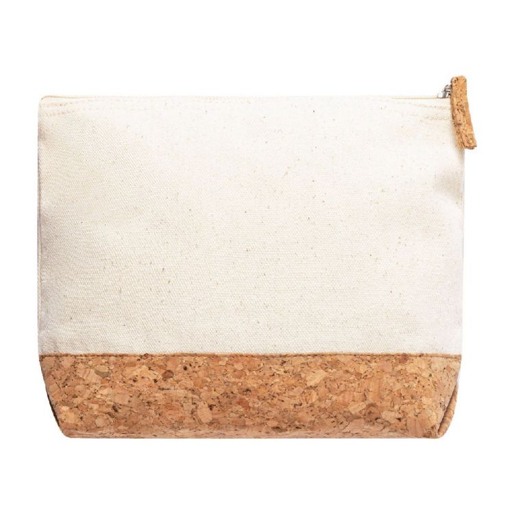 Zipped cosmetic bag in cotton and natural cork, in neutral color