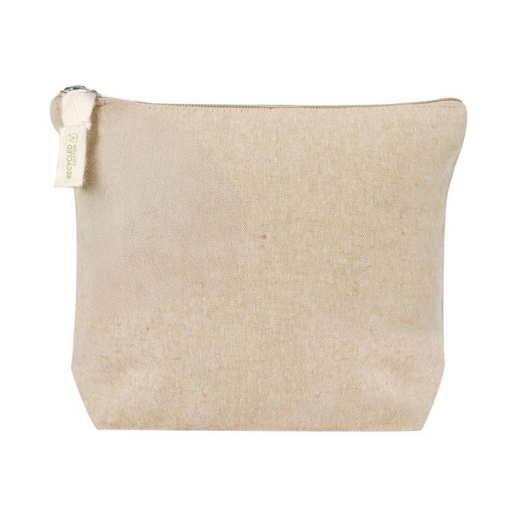 Zipped cosmetic bag in recycled cotton. With distinctive recycled cotton label.