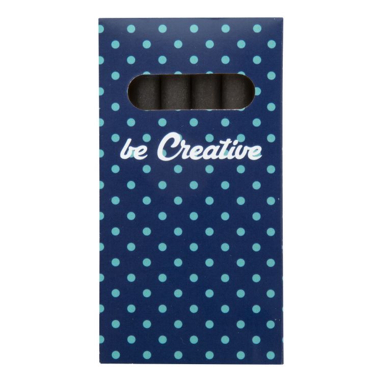 Black paper covered, coloured crayons (6 pcs) in full colour printed paper box. Price includes digital printing. MOQ: 100 pcs