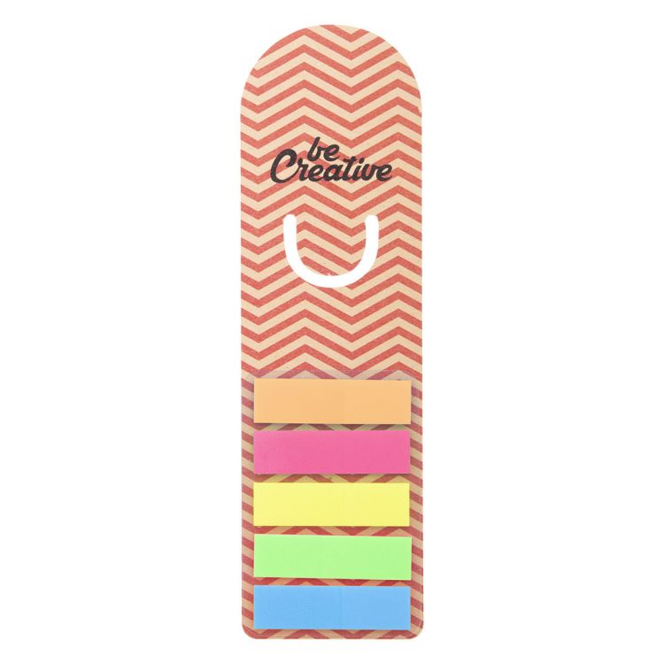 Custom made, recycled kraft paper bookmark with page markers. Includes 100 plastic film page markers in 5 assorted colours (44×12 mm). Price includes full colour printing on front side. MOQ: 100 pcs