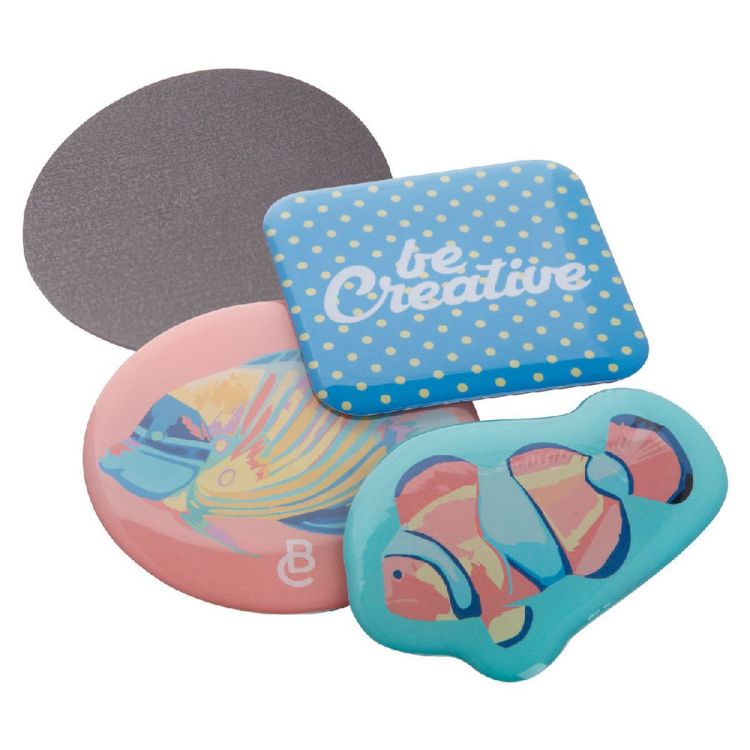 Custom made epoxy coated fridge magnet with unique shape and digital printing. MOQ: 100 pcs