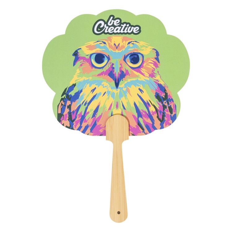 Custom made hand fan with bamboo handle and laminated paper. Digital printed with your graphic on both sides. MOQ: 100 pcs