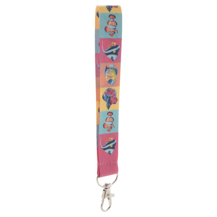 Custom made, RPET polyester keyring with metal carabiner. With inside RPET label and sublimation printed graphics on both sides. MOQ: 100 pcs