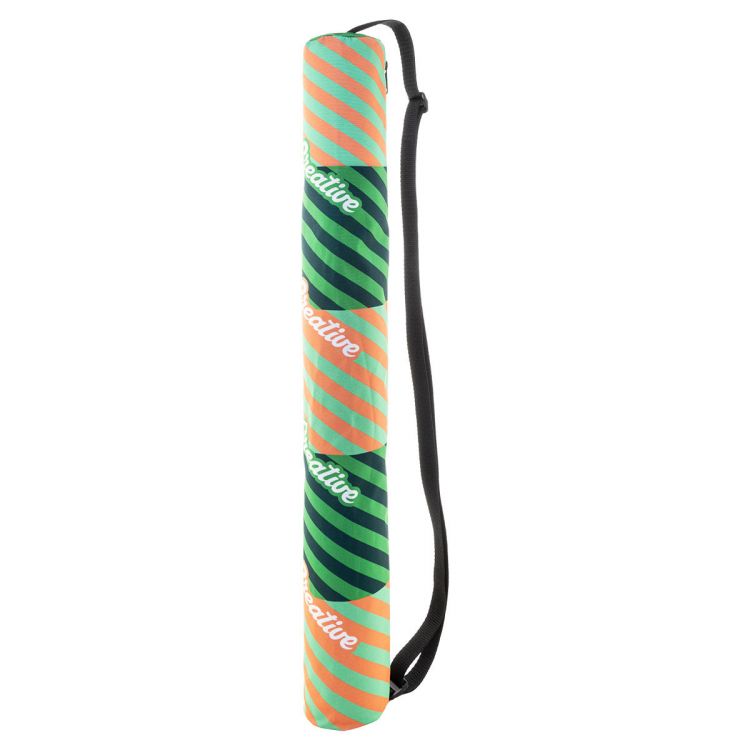 Custom made, can holder bag in 600D RPET polyester with zipped compartment and adjustable shoulder strap. With all over sublimation printed graphics and distinctive RPET label. Fits 5 pcs of 0,33 L standard-type aluminium cans. MOQ: 25 pcs.