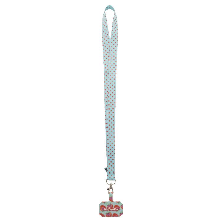 Custom made, RPET mobile holder lanyard with metal carabiner and full colour printed phone insert in tearproof paper. With sublimation printed graphics on both sides. MOQ: 100 pcs