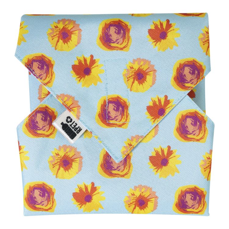 Custom made, foldable and reusable sandwich wrap in 600D RPET polyester with durable waterproof lining and velcro closure. Ideal for wrapping snacks or a sandwich. With all over sublimation printed graphics. MOQ: 25 pcs