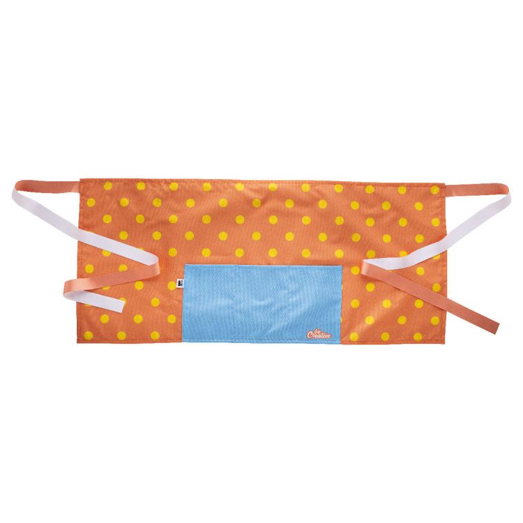 Custom made, 600D RPET polyester bistro apron with triple front pocket and all over sublimation printed graphics and distinctive RPET label. MOQ: 25 pcs