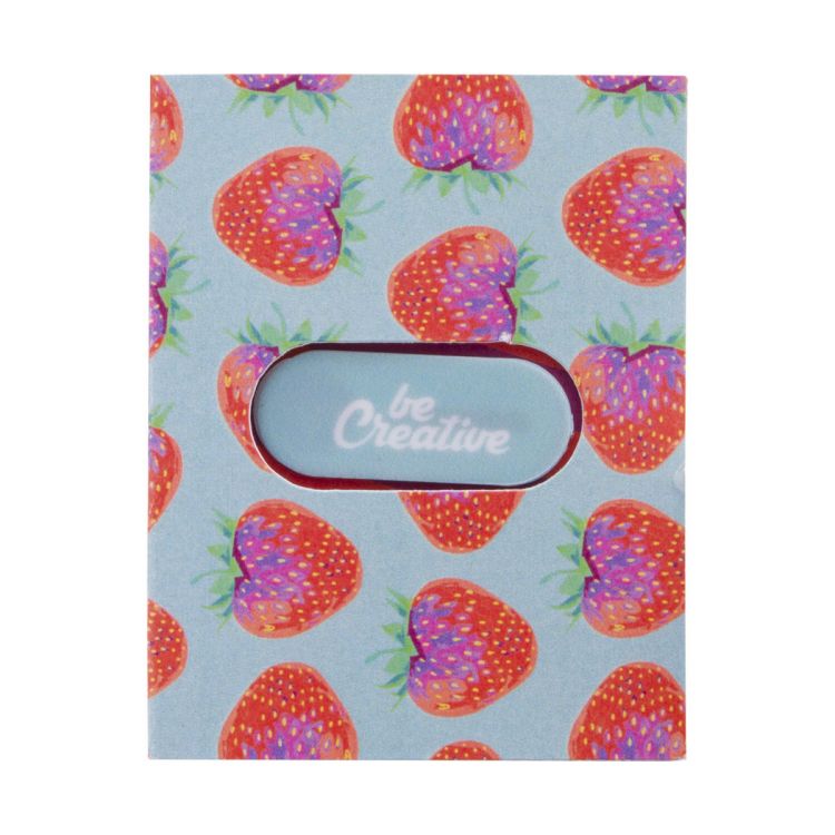 Custom, full colour printed plastic, anti spy webcam blocker with sliding cover and adhesive back. With all over digital printed paper booklet. Price includes digital and UV LED printing. MOQ: 100 pcs