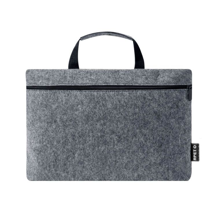 Document holder in durable RPET felt melange effect. Zipped main compartment for laptops up to 15 inches, and a small inner pocket. Durable matching handles with black color details. RPET badge on outer label.RPET felt is the result of the combination of the recycling processes of plastic materials along with the millenary technique of felt manufacturing, resulting in an eco-trend material that, in addition to being of recycled origin, also becomes recyclable. (grey color)