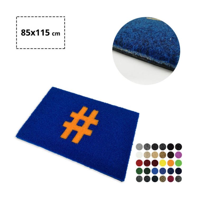 Doormat in customised needle-punched velvet, also combinable with each other by means of an accurate inlay technique. Recommended for indoor and covered outdoor use.