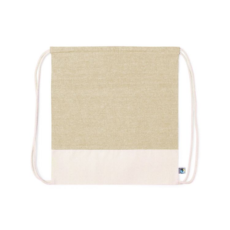 Nature line drawstring bag, manufactured in 100 cotton material 140g/m2. With Fairtrade certification, an alternative to the conventional trade system that pursues the development of peoples and the fight against poverty. Stitched finish and matching cotton strings with natural tone base and top front available in black and natural colors. Fairtrade label and hangtag in recycled cardboard included. (neutral color)