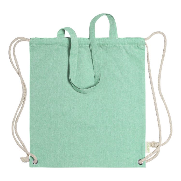 Recycled cotton drawstring bag with thick braided cords and long handles. It can be also used as a shopping bag. 100% recycled cotton, 140 g/m².