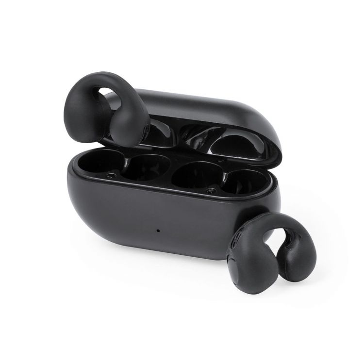 Open ear headphones with Bluetooth® 5.3 connection and hands-free function. Designed to fit perfectly in the ears using a handy clip, offering a comfortable listening experience. Touch control button integrated in the earpiece, with matching charging base and 200 mAh battery, Type C connection, and charging cable included. Presented in an individual kraft design box, with instruction manual in English and Spanish.Manufactured according to RoHS standards and in compliance with the following safety requirements: Overheating protection system. Over-charge protection system. Blocking system to prevent short circuits.