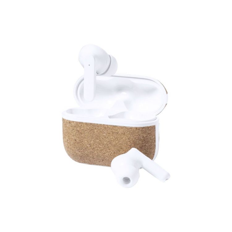 Earphones with exclusive design Limited Edition With Bluetooth® 5.0 connection, hands-free function and elegant white finish. Ergonomically designed and with 30 mAh battery. Integrated touch control button on the earpiece and LED charging status light. Matching charging base, with 300mAh battery and covered in natural cork, with Type C charging cable included. Instruction manual available in English and Spanish.Presented in a Limited Edition Experience case, with unique design and protected by industrial property rights. Recycled cardboard card with Limited Edition description included.From the perfect combination of exclusivity and design comes Limited Edition, a special collection of limited edition promotional ideas. A new concept, inspired by the fusion of premium items with the latest trends, in batches of limited units, offering a unique, exclusive and unforgettable gift experience.Manufactured according to RoHS standards and in compliance with the following safety requirements:Overheating protection system.Over-charge protection system.Blocking system to prevent short circuits. (neutral color)