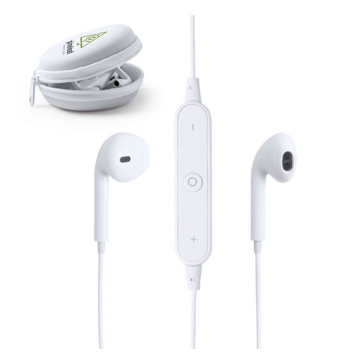 Earphones with bluetooth connection and minimalist design in an elegant white color. Ergonomically designed, including an integrated control panel in the cable and hands free function. Rechargeable via mini USB cable -included-. Presented in a resistant, individual, nmatching color, PU case with zipper closure. (white color)