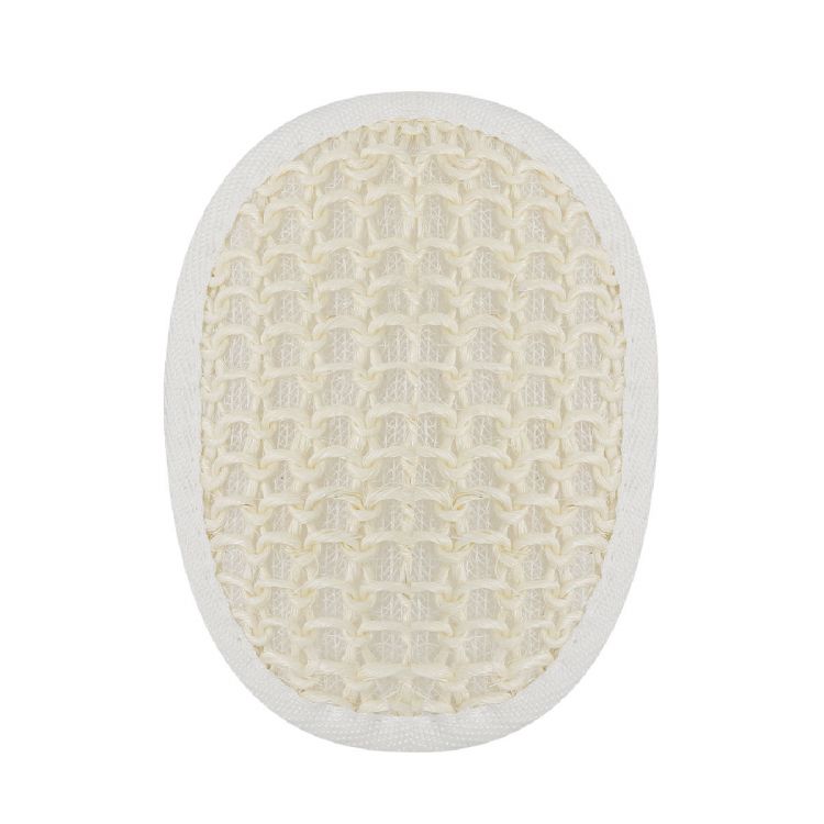 Exfoliating bath sponge in cotton adaptable to the palm of the hand, with matching holding strap. (neutral color)